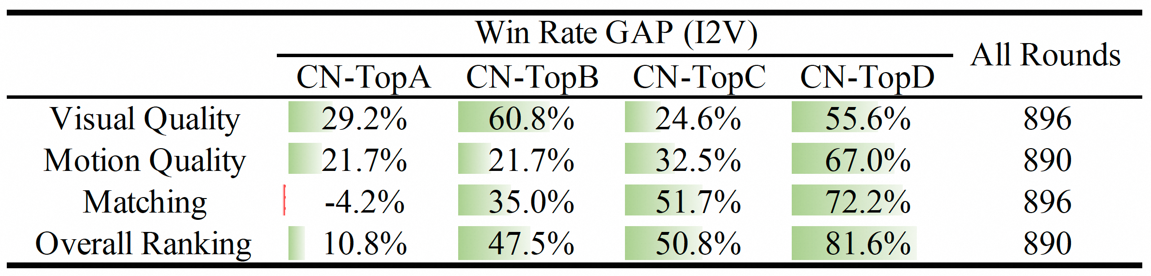 We conducted extensive manual evaluations to evaluate the performance of the Image-to-Video model, and the results are presented in the table below. The results clearly indicate that Wan2.1 outperforms both closed-source and open-source models.