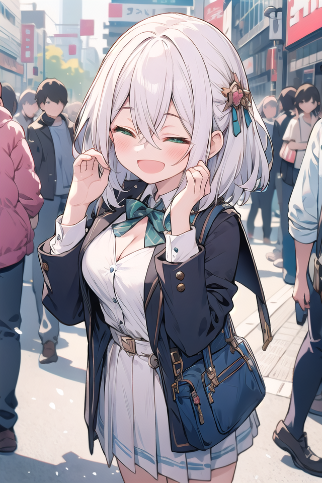 前歯が見えるようにしたい場合はupper teethなど歯に関するプロンプトを追加してみてください。