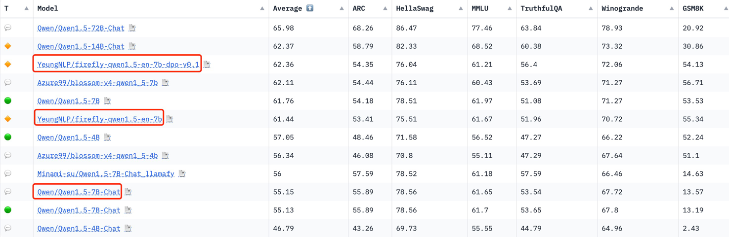 firefly-qwen1.5-en-7b and firefly-qwen1.5-en-7b-dpo-v0.1 are trained based on Qwen1.5-7B to act as a helpful and harmless AI assistant. We use Firefly to train our models on a single V100 GPU with QLoRA. firefly-qwen1.5-en-7b is fine-tuned based on Qwen1.5-7B with English instruction data, and firefly-qwen1.5-en-7b-dpo-v0.1 is trained with Direct Preference Optimization (DPO) based on firefly-qwen1.5-en-7b.