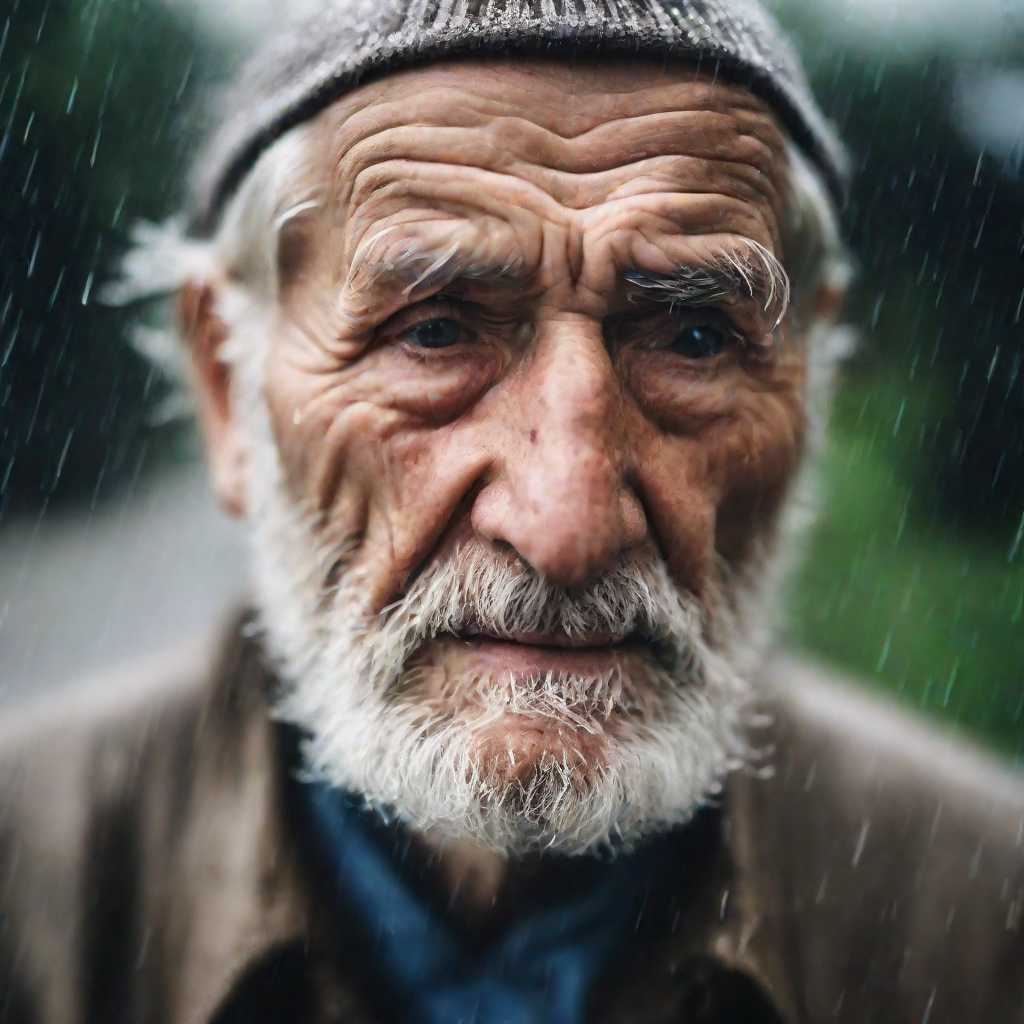 prompt = "a close-up picture of an old man standing in the rain"