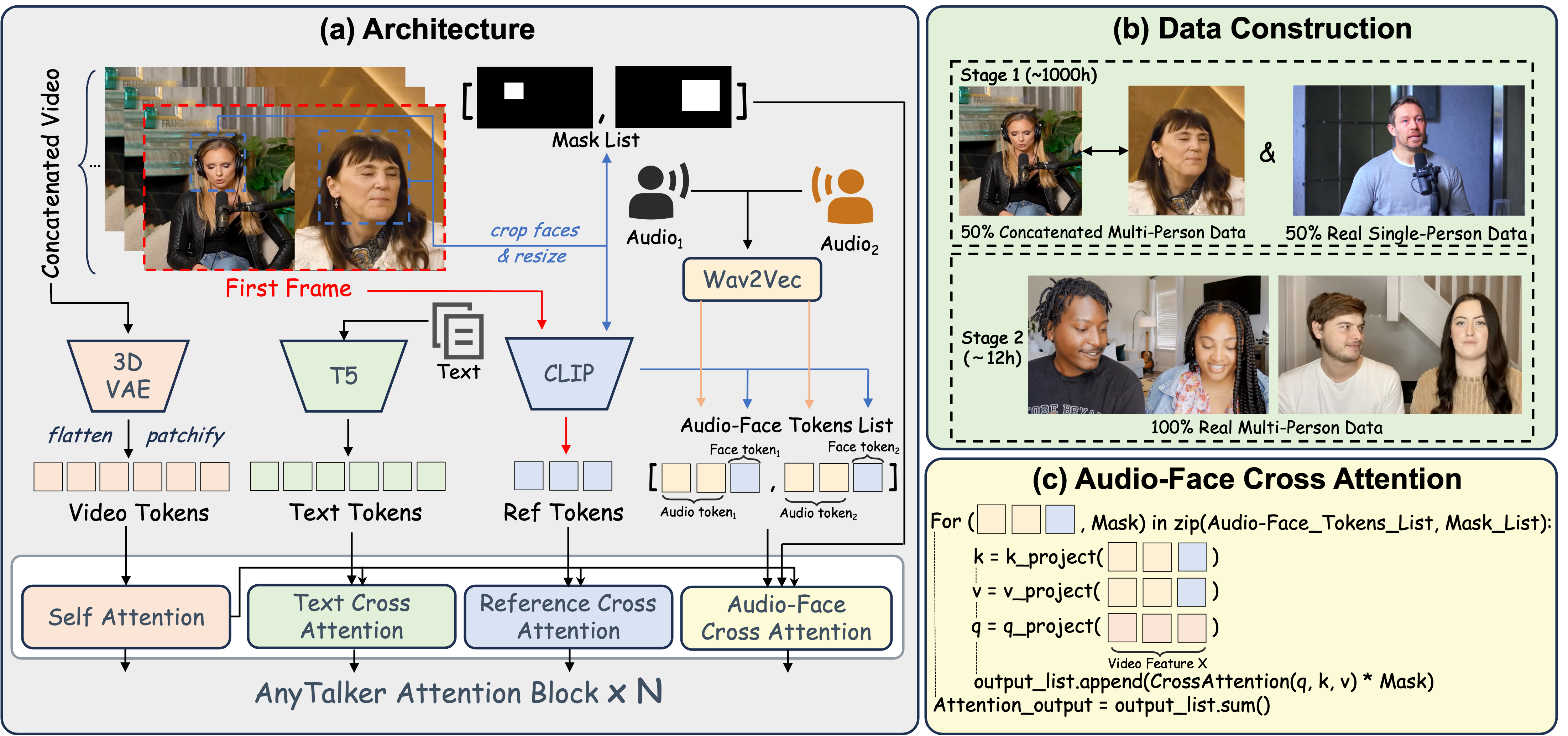 > **TL; DR:** AnyTalker is an audio-driven framework for generating multi-person talking videos. It features a flexible multi-stream structure to scale identities while ensuring seamless inter-identity interactions.